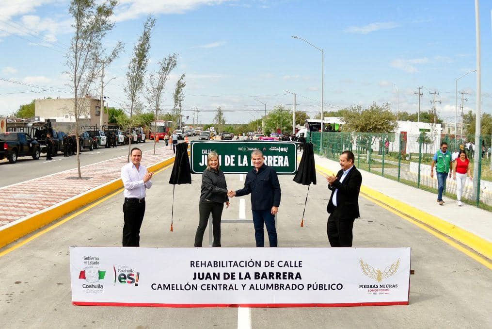 En su gira de trabajo por Piedras Negras, el gobernador Miguel Riquelme acudió al sector Año 2000, en la calle Juan de la Barrera cruce con Taray, donde se realizó el recarpeteo con recursos por 3 millones 105 mil pesos.