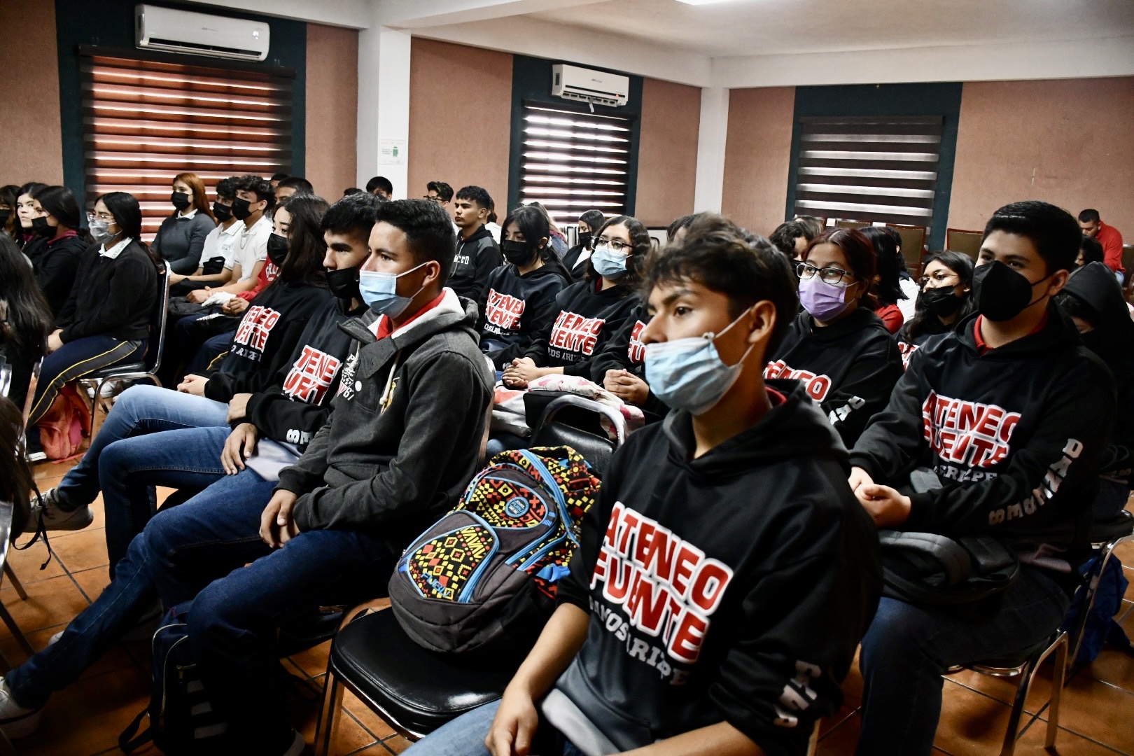 Con la presencia de poco más de 60 jóvenes provenientes del Ateneo Fuente extensión Ramos Arizpe y el CETis 60, Martínez Martínez abordó en su conferencia temas relacionados con la salud mental, las adicciones, la sexualidad así como los cambios físicos y mentales que generan inseguridades en una etapa de la vida como la adolescencia.