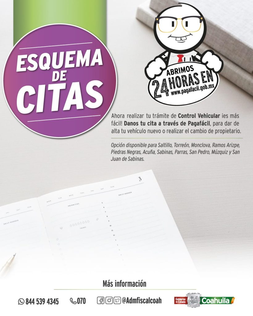 Díaz González compartió: “Tenemos disponible el Esquema de citas, del cual los coahuilenses pueden generar su cita en la ALR más cercana, en el día y hora de su preferencia”.