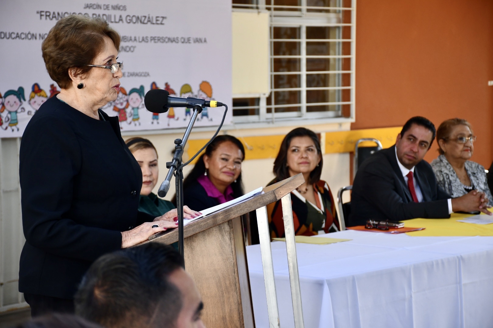 En la celebración acompañaron al edil, Tomás Gutiérrez Merino, secretario de Desarrollo Social; Adelaida Gutiérrez Romo, directora de Educación; María Agustina Tristán Well, supervisora general del sector no. 12 del nivel preescolar; Imelda Rosaura Hernandez Llamas, directora del plantel en el turno matutino; Margarita Castro Loera, directora del plantel en el turno vespertino