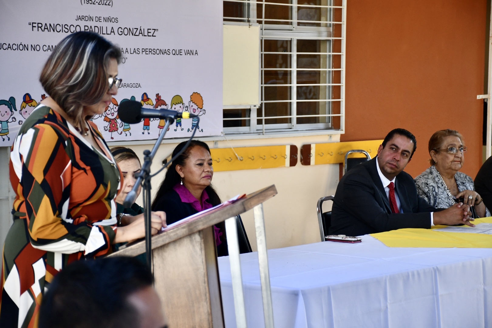 En el marco por los festejos del 70 aniversario del Jardín de Niños “Francisco Padilla González”, el alcalde de Ramos Arizpe, Chema Morales Padilla, acudió como invitado de honor a la ceremonia realizada en el plantel educativo, en donde estuvo acompañado en el presidium por directores, supervisores educativos y funcionarios municipales.