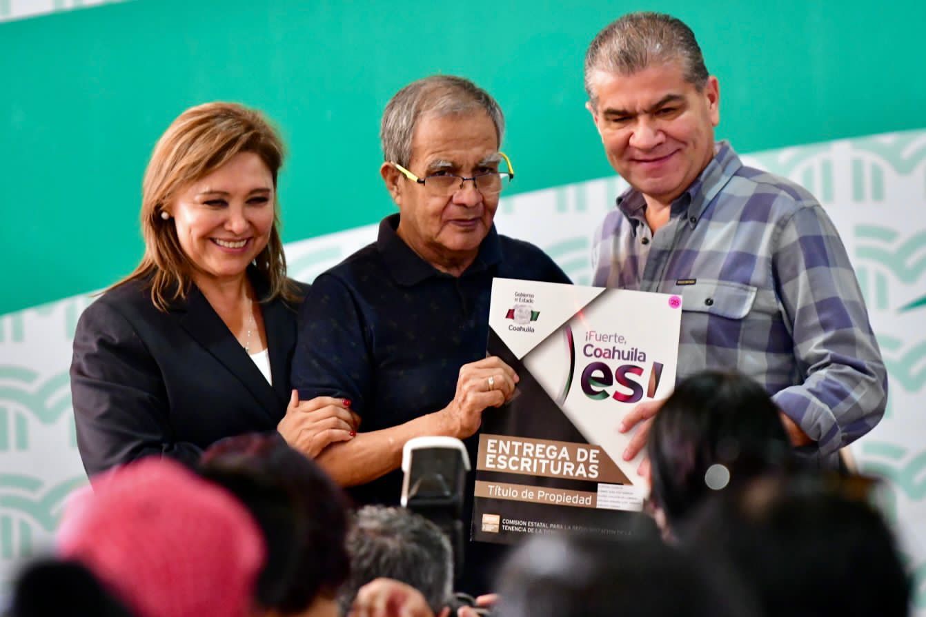 Agradeció el trabajo de los notarios públicos y felicitó a quienes recibieron sus escrituras, porque a partir de hoy más familias de la Carbonífera ya son dueñas de un pedacito de Coahuila y de México.