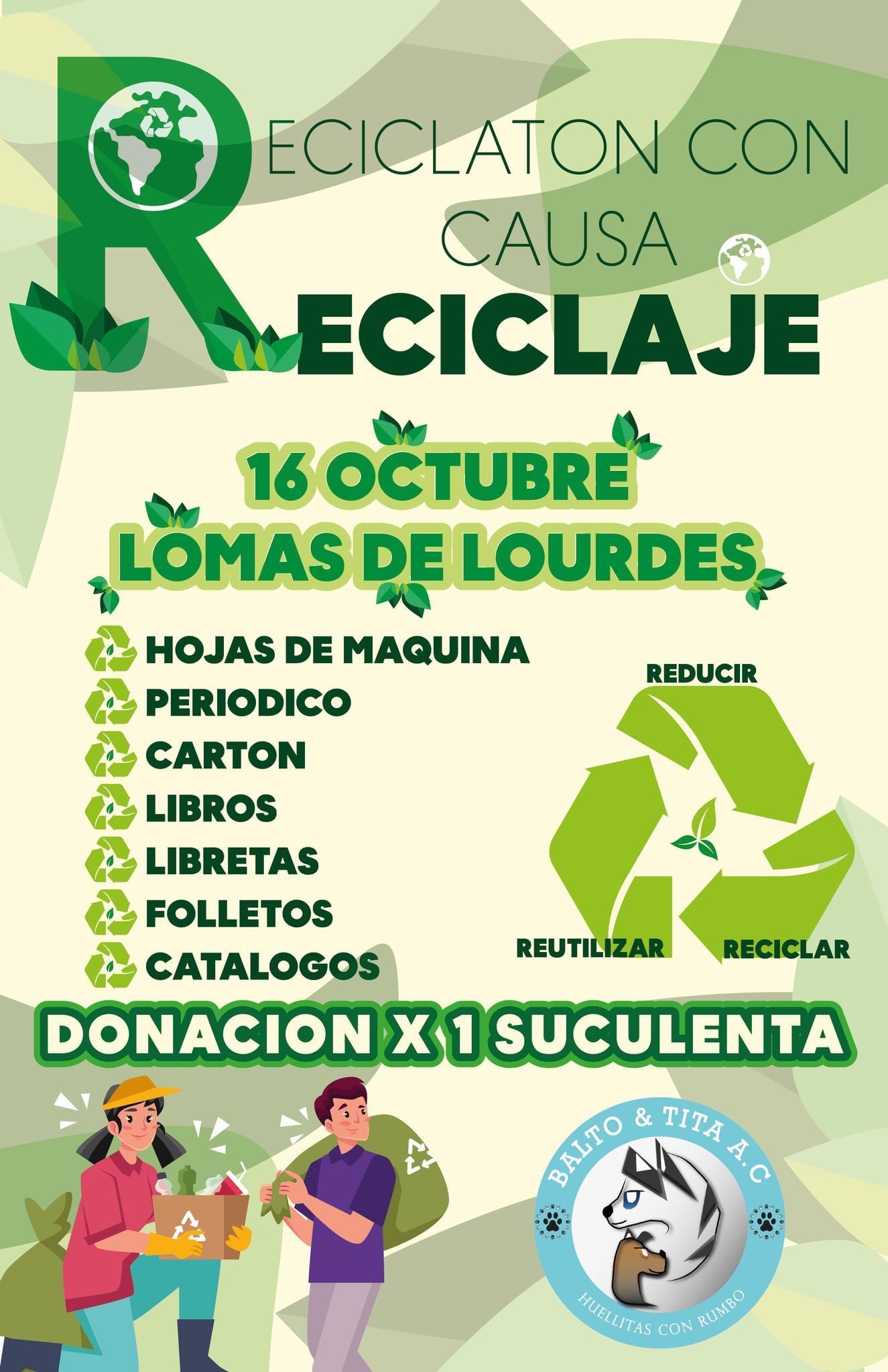 La agrupación protectora de animales ‘Balto y Tita A.C.’ invitan a las familias saltillenses a participar en el “Reciclatón con Causa” con el objetivo de reunir la mayor cantidad posible de material reciclable, con cuya venta se busca obtener recursos económicos que serán destinados a distintos albergues de la Región Sureste donde se ofrece refugio a perros y gatos que están en espera de ser adoptados.