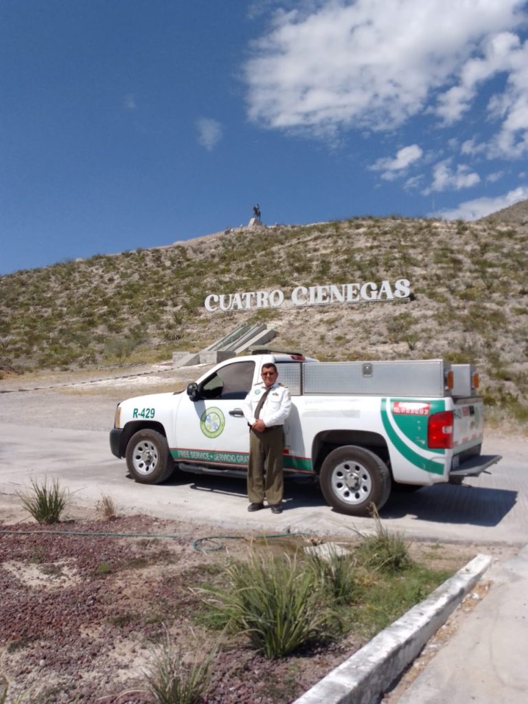 Durante el recorrido carretero que realicen los turistas para llegar al Pueblo Mágico de Cuatro Ciénegas desde Monclova, contarán con el servicio de atención y auxilio mecánico de Sectur a través de los Ángeles Verdes, ya sea solicitándolo a través de la aplicación móvil Ángeles Verdes o del número de marcación rápida 078, el cual será atendido con apoyo del Centro de Geointeligencia, que permite ubicar en tiempo real la unidad que asistirá en apoyo y el tiempo que tardará en llegar al sitio.