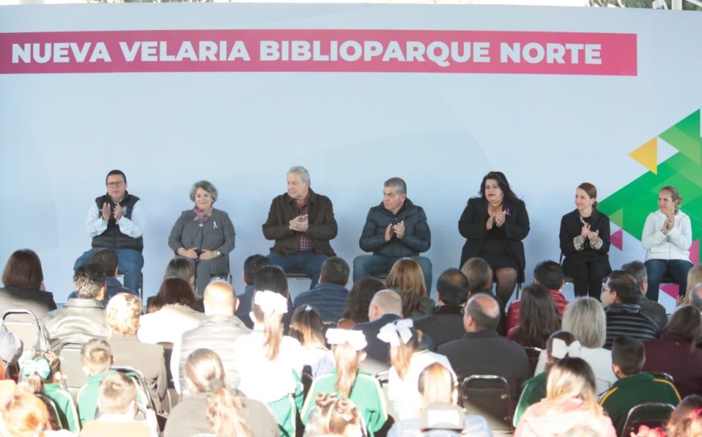 El gobernador Miguel Ángel Riquelme Solís acompañó al alcalde José María Fraustro Siller en la ceremonia en la que se entregó la rehabilitación de la Velaria del Biblioparque Norte, además de material para los Centros Comunitarios de Saltillo.