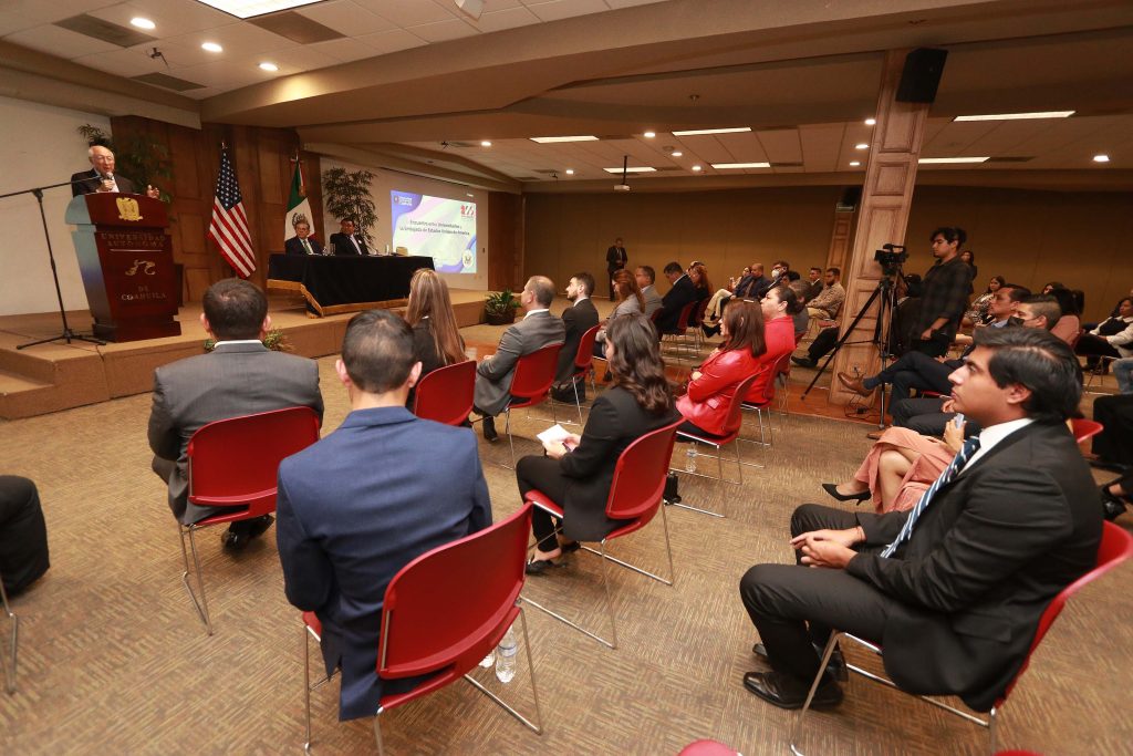 El embajador de los Estados Unidos de América en México, Ken Salazar sostuvo una reunión con alumnos de las Facultades de Medicina, Sistemas, Ingeniería, Economía y Jurisprudencia, de la Universidad Autónoma de Coahuila, con el objetivo de realizar un intercambio de ideas entre ambas partes.
