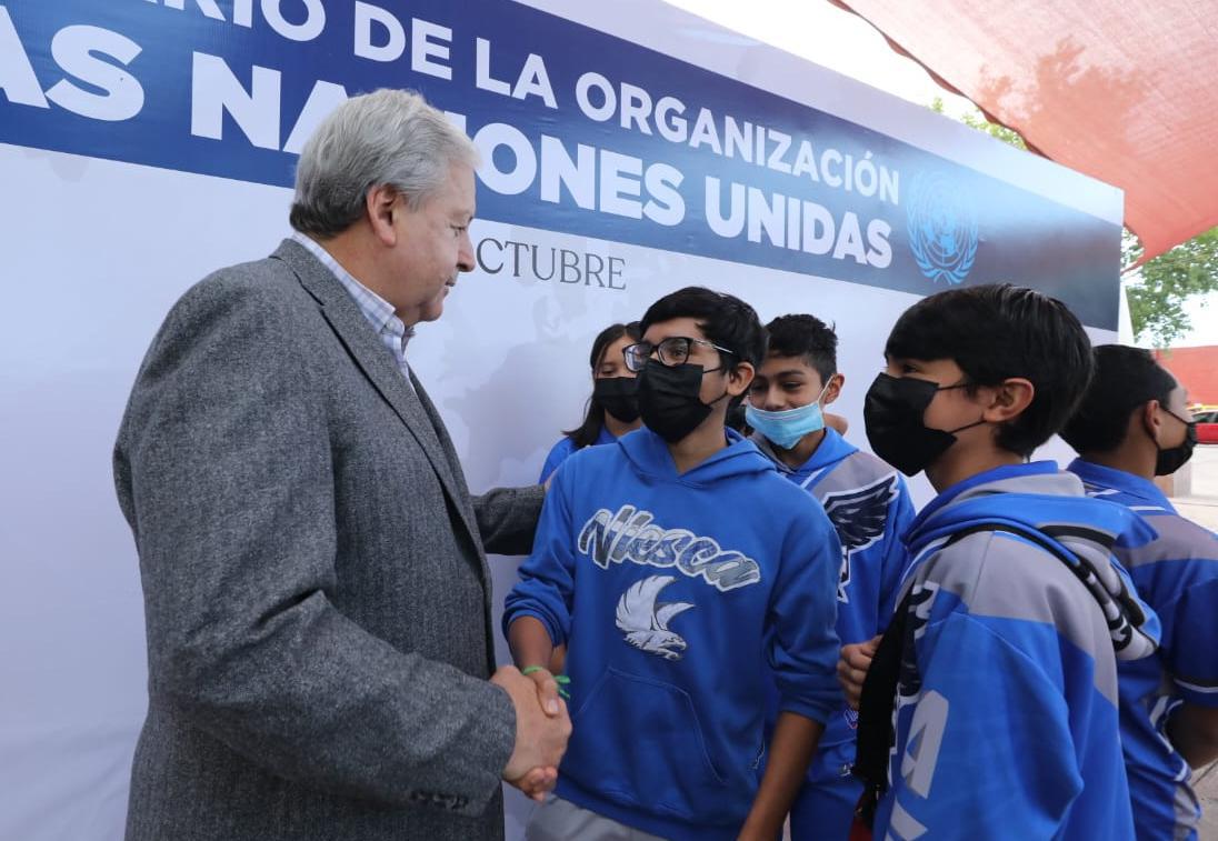 En el marco de la conmemoración del aniversario de la Organización de las Naciones Unidas, se llevó a cabo en la explanada de la Presidencia Municipal un evento institucional de parte del Municipio para resaltar la relevancia que tiene la agenda planteada por la ONU desde hace 77 años.