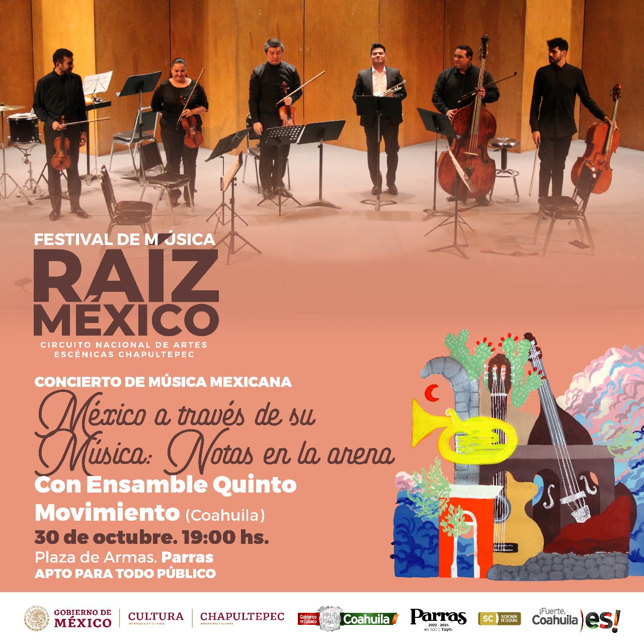 El Gobierno del Estado de Coahuila, a través de su Secretaría de Cultura y en coordinación con la Secretaría de Cultura Federal, de los municipios de Cuatro Ciénegas, Matamoros, Parras, Progreso, Saltillo, San Juan de Sabinas y San Pedro, y de la Universidad Autónoma de Coahuila, invitan al público a disfrutar las diferentes funciones de “Circuito Música Raíz México”.