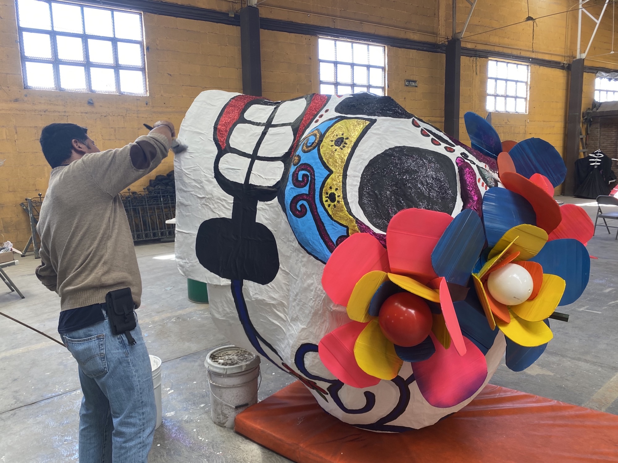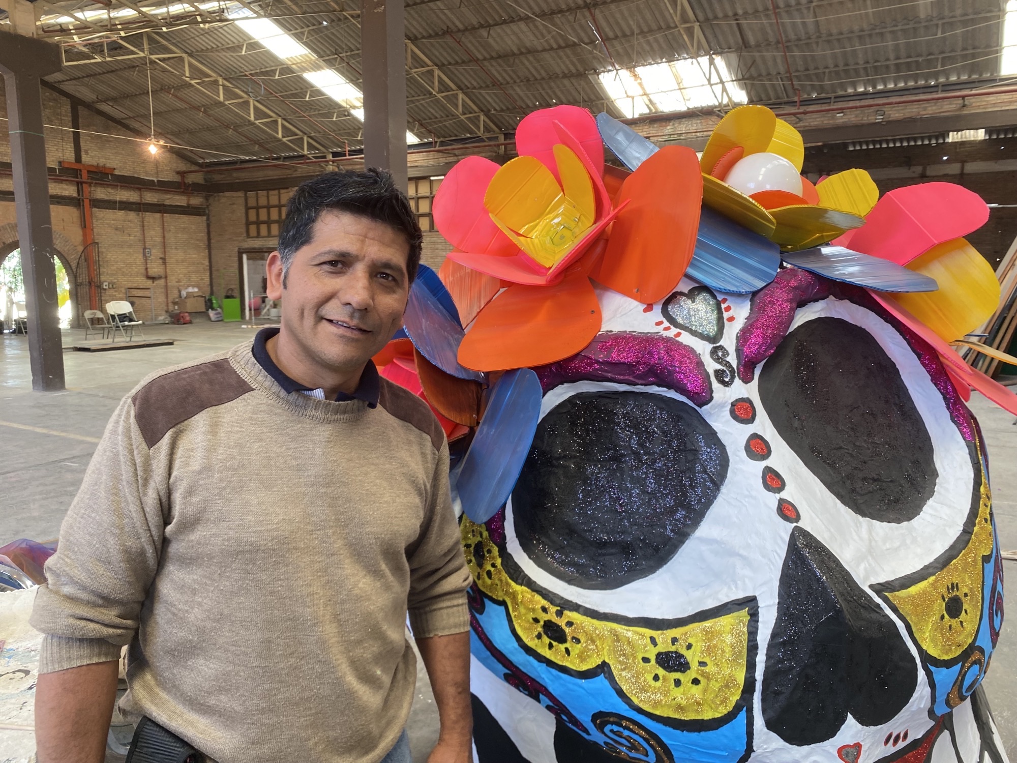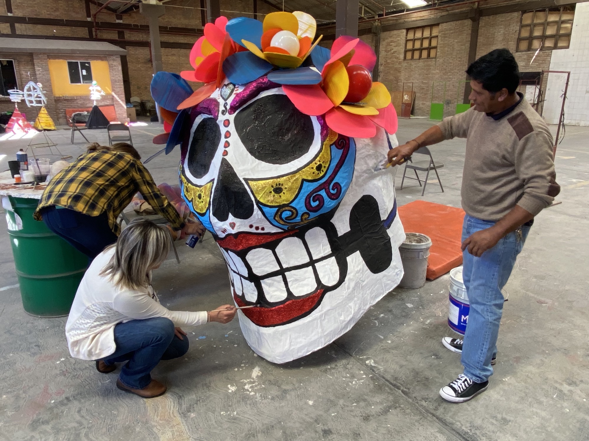 “Estamos en los últimos detalles de lo que será la cabeza de la catrina. La pudimos elaborar con alambrón y malla, grandes cantidades de papel periódico y estraza. Únicamente nos encontramos en la parte de colocarle un recubrimiento transparente para el tema de la humedad” explicó.