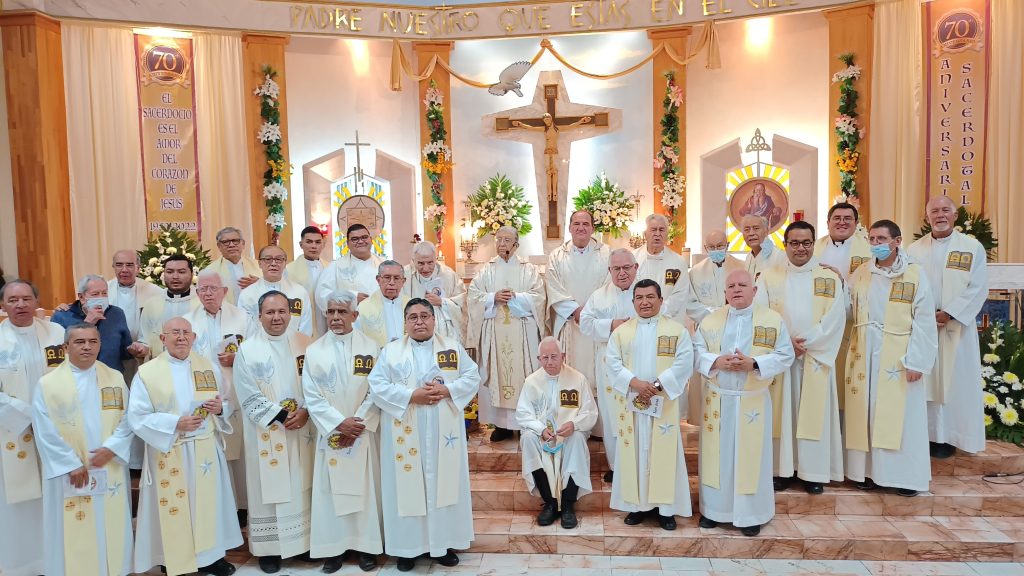 Con una misa concelebrada en la Iglesia del Padre Nuestro, misma que encabezó el Obispo Hilario González García y en la que tomaron parte sacerdotes de diferentes comunidades de la Diócesis de Saltillo, el Padre Humberto González Galindo celebró este miércoles 70 años de servicio sacerdotal.