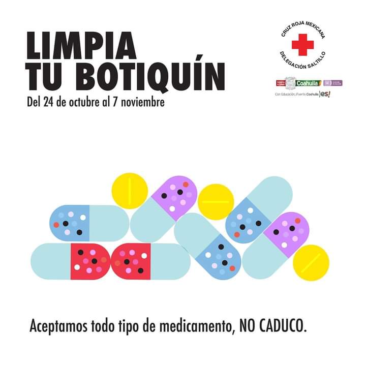 La delegación Saltillo de la Cruz Roja dio a conocer que esta semana dio inicio la colecta anual de medicamentos y material de curación, denominada “Limpia tu Botiquín”, en su edición 2022.