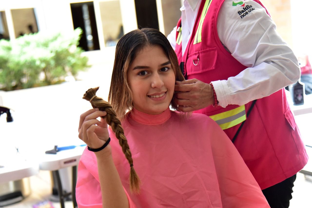 Con el apoyo de alumnas del taller de belleza del DIF Saltillo, 42 mujeres y un hombre donaron su cabello en buen estado con un mínimo de largo de 25 centímetros.