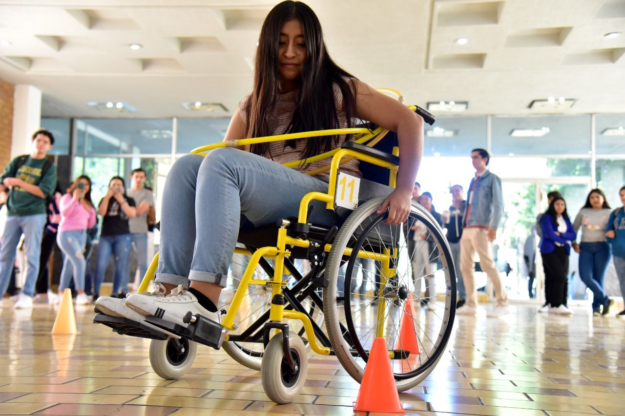 Las actividades incluyeron un recorrido en silla de ruedas, pintar un dibujo sin utilizar las manos y recortar con los ojos vendados, entre otras.