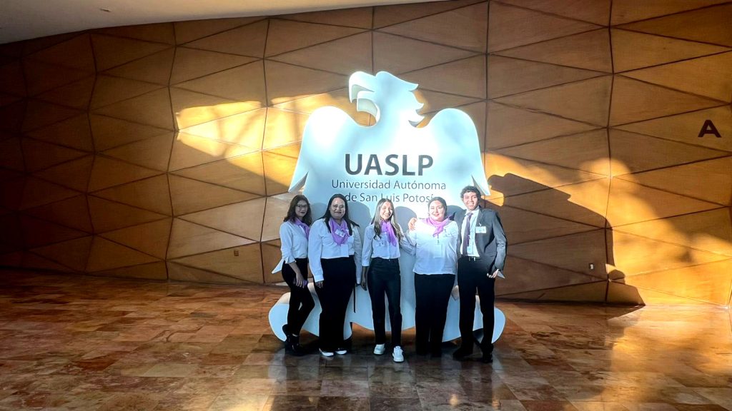 Los alumnos del noveno semestre de la Licenciatura en Negocios Internacionales que conforman el equipo son Aglaé García Rosales, Alexandra Javier Vázquez, Lucero García, María de Jesús Gutiérrez, Roberto Alejo Flores, asesorados por la catedrática de la Facultad, la Dra. Laura Gaona Tamez.