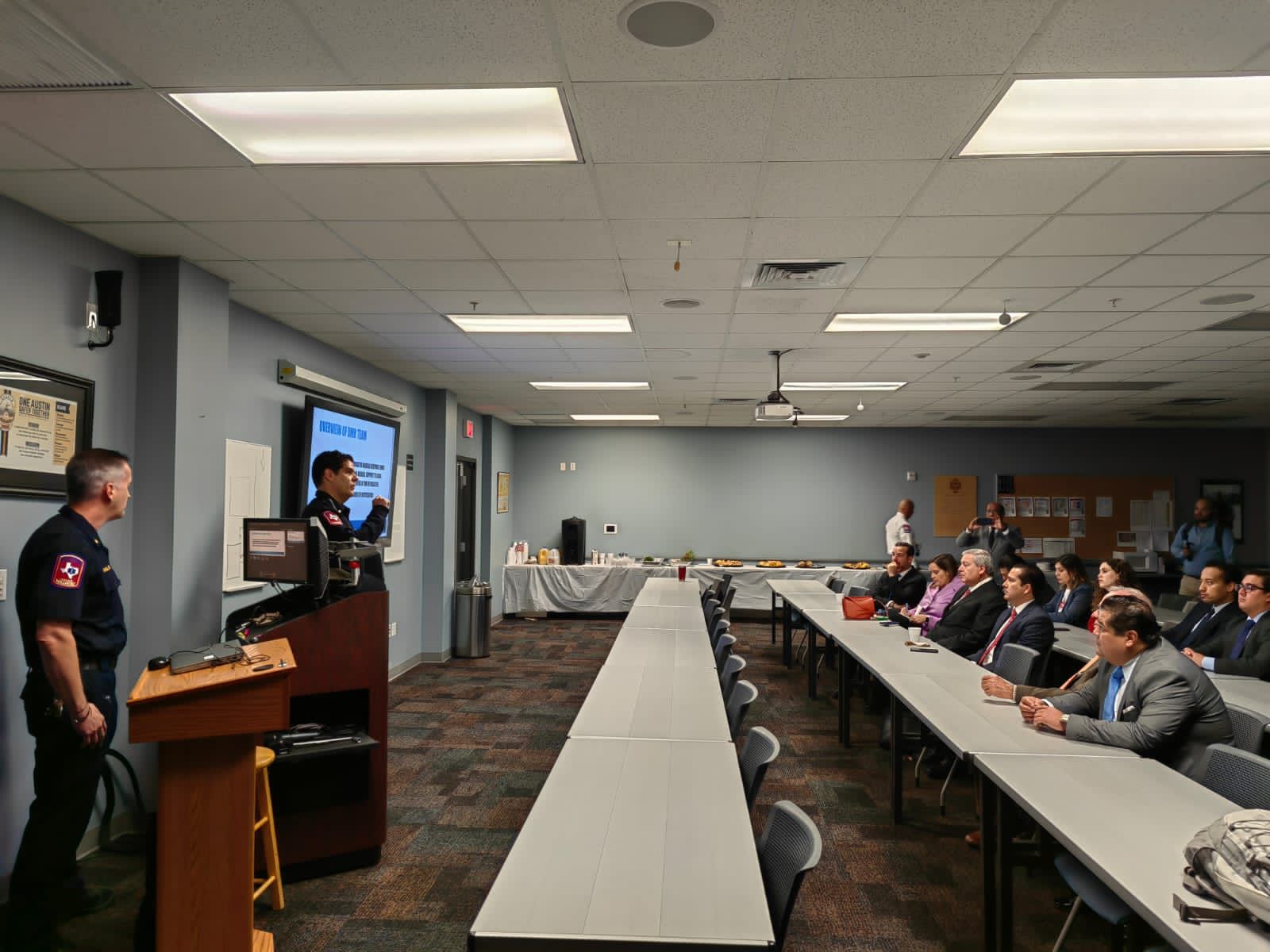 En el encuentro participaron Steve Adler, alcalde de Austin; el juez del condado Hays, Rubén Becerra; Joel G. Backer, jefe de Bomberos; André de la Reza, jefe asistente del departamento de bomberos; Joseph Chacón, jefe de la Policía; y Juan Ortiz, jefe de Seguridad y Emergencias, entre otros.