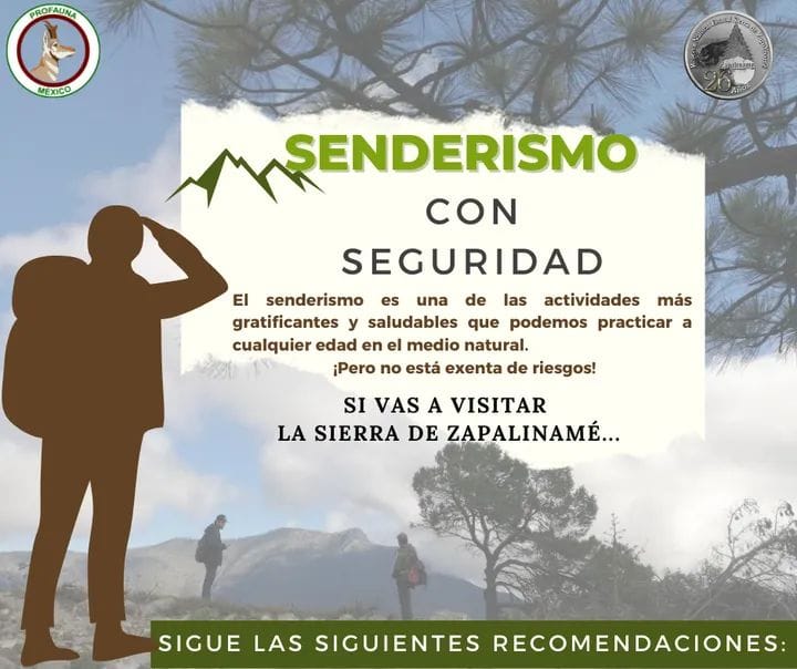 Para evitar riesgos a la integridad de aficionados a practicar senderismo por espacios naturales como sierras y zonas boscosas, la asociación civil Protección de la Fauna Mexicana Asociación Civil (Profauna) en Saltillo y Sierra de Zapalinamé lanzaron una campaña en sus redes sociales para compartir recomendaciones para realizar esta actividad de manera segura.