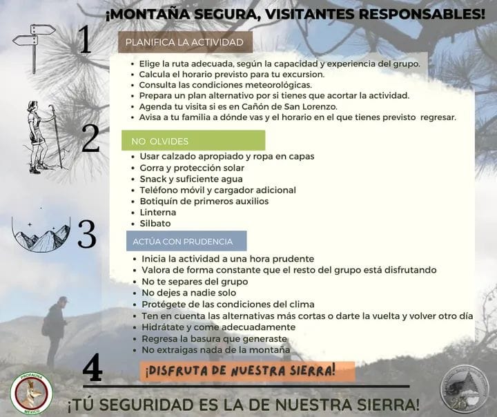 «Se han intensificado las campañas para poder orientar a los visitantes, especialmente a los senderistas, para que tomen precauciones y evitar accidentes. La idea es que cuando la gente vaya a las sierras, lo haga consciente de que va a un ambiente natural en el que pueden suceder accidentes, por lo mismo recomendamos que siempre vayan acompañados y que previamente informen a sus parientes sobre las veredas que van a visitar», dijo en entrevista telefónica para El Heraldo de Saltillo.