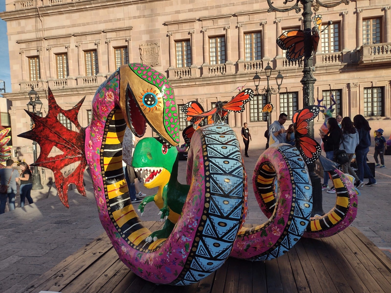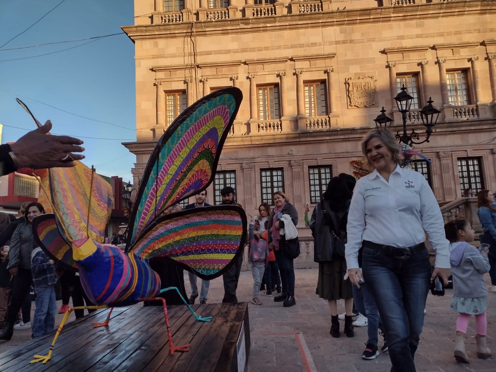 «Lo que nosotros quisimos es hacer esa unión entre el paso de la mariposa y el día de muertos. Para los purépechas, la llegada de la mariposa monarca significa el regreso de las almas; tenemos muchos elementos de las ánimas. Cada año nos hemos fijado metas más elevadas y este año también intervenimos la Plaza de la Nueva Tlaxcala con los alebrijes monumentales. Queremos recuperar el Centro Histórico con estas tradiciones», compartió con El Heraldo de Saltillo, Nicté Ruiz, directora de «RUMA. Arte y Comunidad» y coordinadora de la instalación.