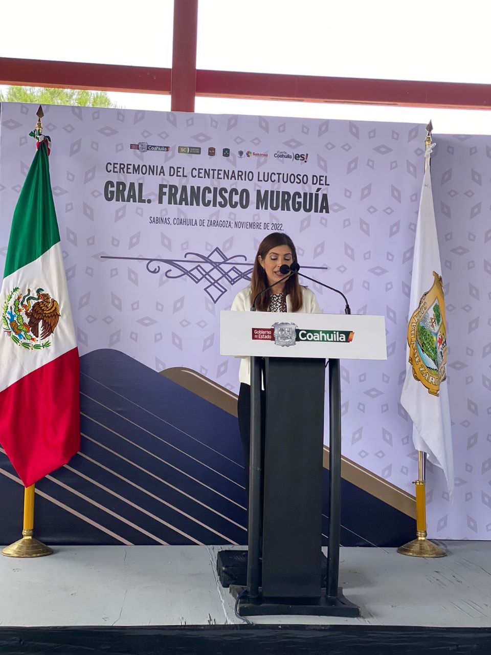 Sabinas, Coahuila de Zaragoza.- La Secretaría de Cultura de Coahuila (SC) celebró con júbilo el Centenario Luctuoso del General Francisco Murguía, destacado General del Ejército Constitucionalista durante el movimiento de la Revolución Mexicana, en las instalaciones de la Escuela Secundaria que lleva su nombre en la Colonia La Aurora, del municipio de Sabinas.