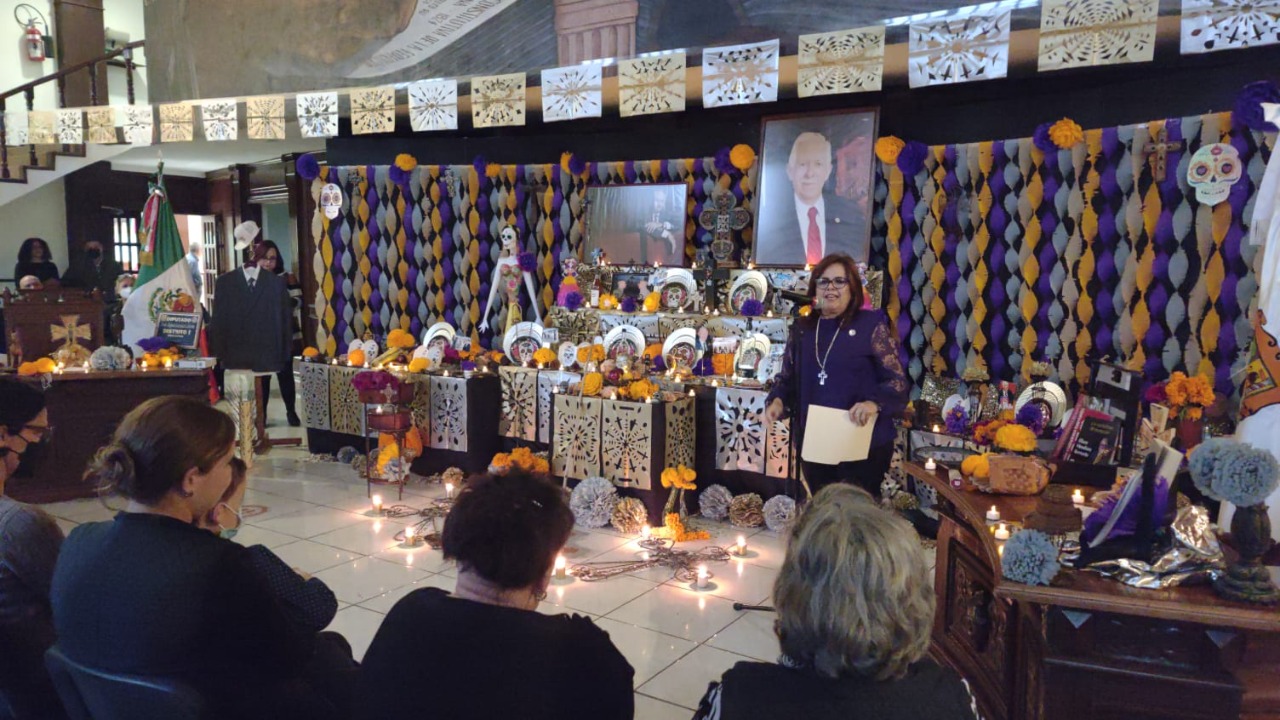 Altar de muertos en el Congreso del Estado en honor a Eliseo Mendoza e Higinio González