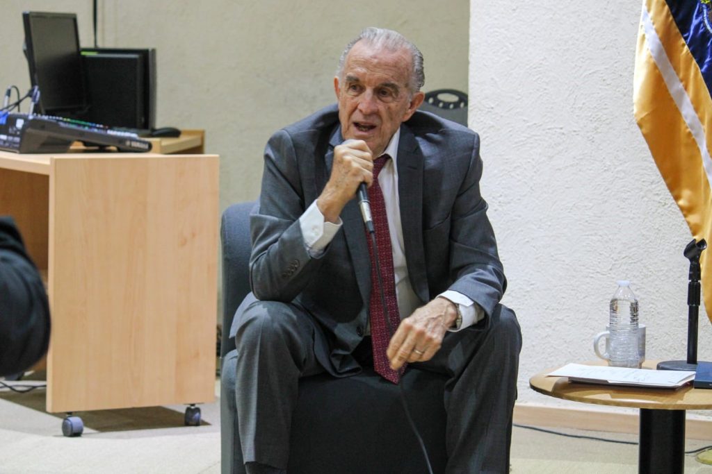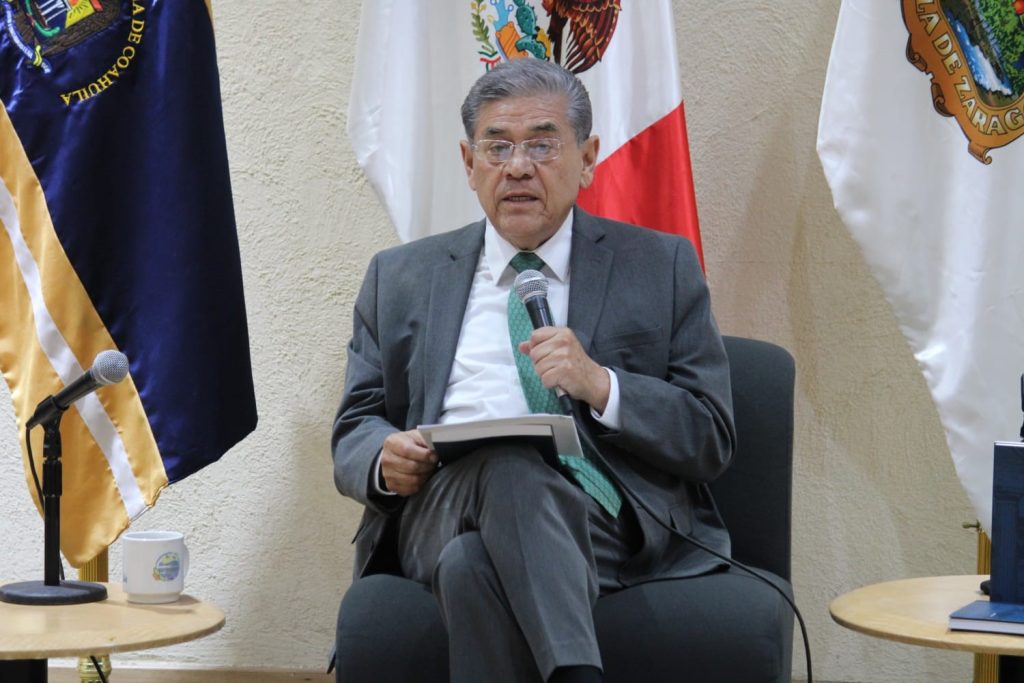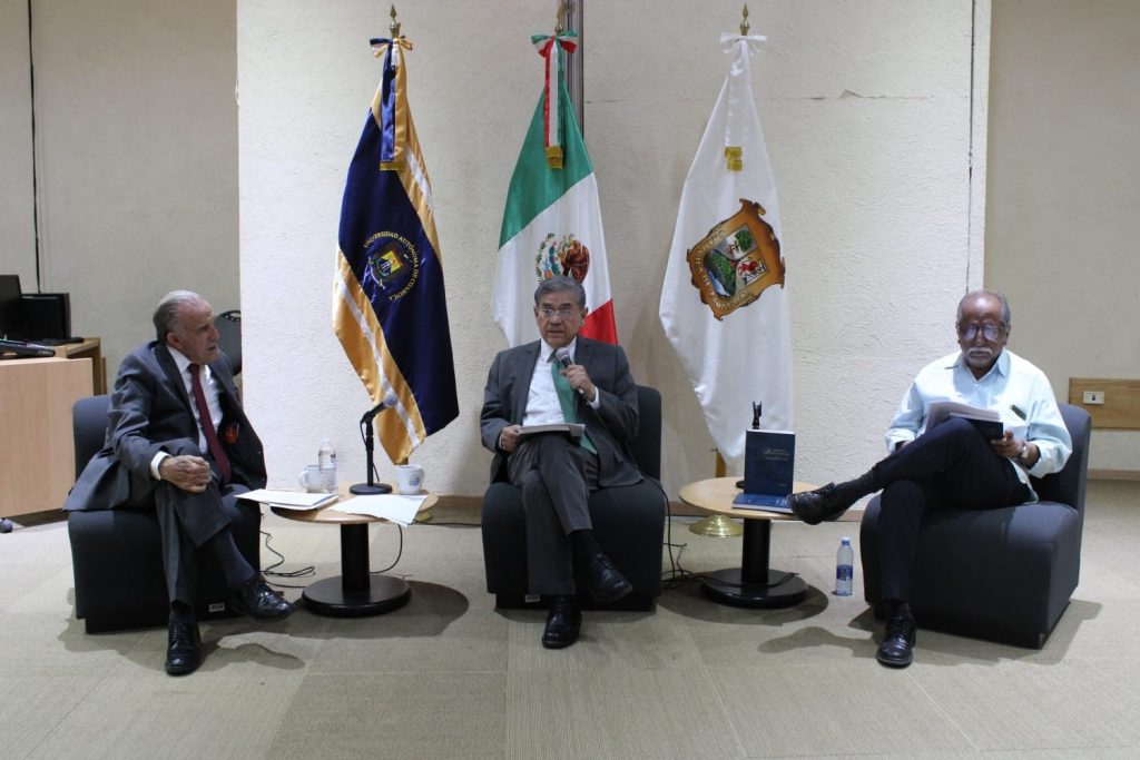 Los comentarios estuvieron a cargo del rector Salvador Hernández Vélez, y del docente de la Facultad de Ciencias Políticas y Sociales, Miguel Ángel Saucedo Lozoya, asistieron la coordinadora de la Unidad Torreón, Sandra López Chavarría, comunidad docente y estudiantil, para conocer la obra de quien es también Maestro Ad Vitam de la UA de C.