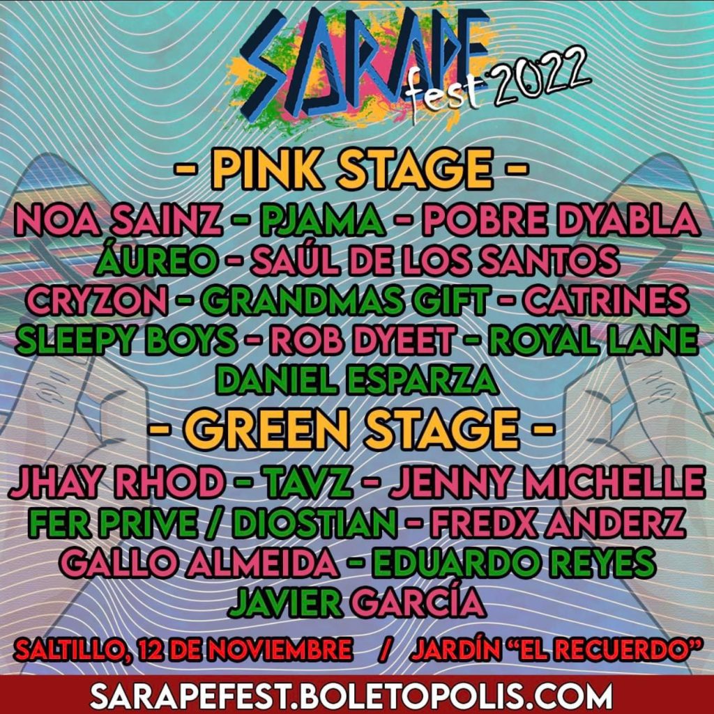 El evento contará con dos escenarios, el primero de ellos se llama Pink Stage, donde tendrán de invitados a artistas como Noa Sainz, Pjama, Pobre Dyabla, Áureo, Saúl De Los Santos, Cryzon, Grandmas Gift, Catrines, Sleepy Boys, Rob Dyeet, Royal Lane y Daniel Esparza, además de food trucks y espacio para expositores de venta local.