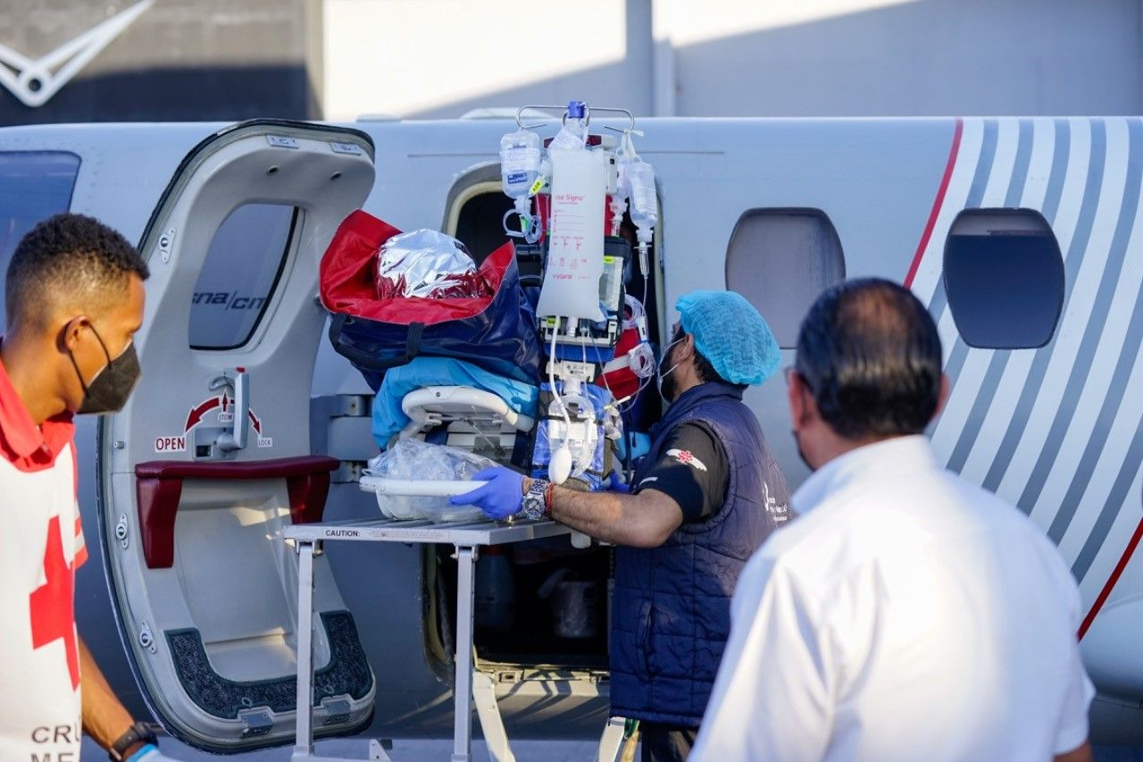 Torreón.- Por instrucciones de la presidenta honoraria del DIF Coahuila, Marcela Gorgón Carrillo, y del gobernador Miguel Ángel Riquelme Solís, este lunes fue trasladado en ambulancia aérea, de Torreón hacia Galveston, Texas, el pequeño Liam Osiel, quien sufriera en días pasados un accidente que le provocó severas quemaduras.