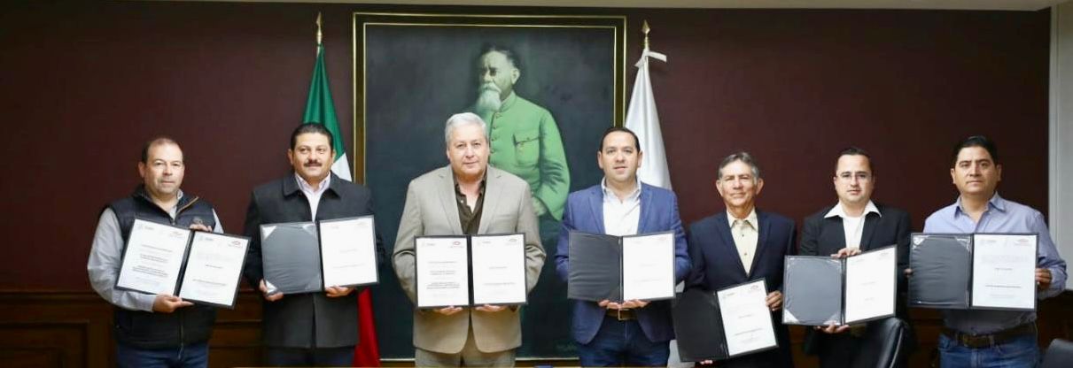 En esta firma de convenio estuvo presente Juan Carlos Villarreal Garza, Tesorero Municipal; Virgilio Verduzco Echeverría, director de Infraestructura y de Obra Pública; así como Sergio Jacinto Olvera Mancera, Oliver Humberto García Flores y Raúl Lara, miembros de la Cámara Mexicana de la Industria de la Construcción. (EL HERALDO)