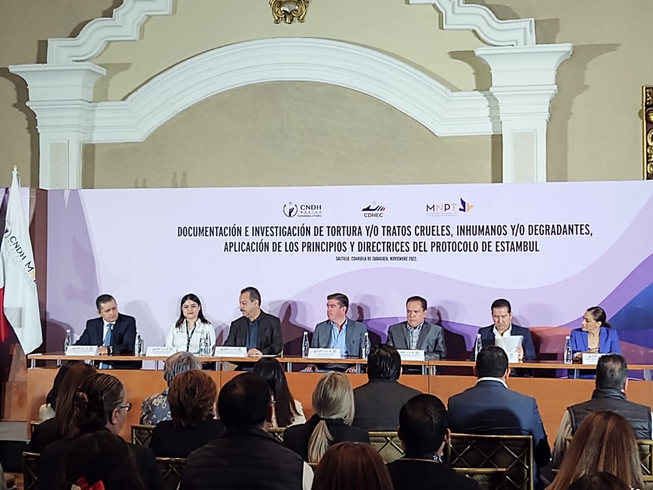 Lo anterior, durante el arranque del Curso «Documentación e Investigación de Tortura y/o Tratos Crueles Inhumanos y/o Tratos Crueles y/o Degradantes. Aplicación de los Principios y Directrices del Protocolo de Estambul», que se ofreció este viernes desde Saltillo para representantes de direcciones de seguridad pública municipales, elementos de la Fiscalía General del Estado (FGE) e integrantes de las fuerzas policiales de Coahuila, por parte de la CDHEC, Comisión Nacional de los Derechos Humanos (CNDH) y el Mecanismo Nacional de Prevención de la Tortura (MNPT).