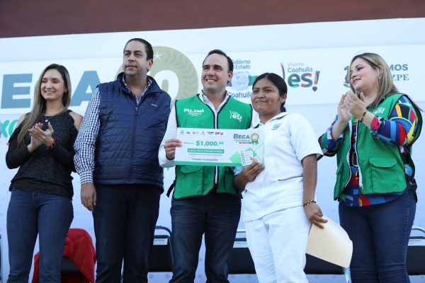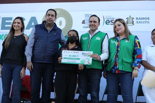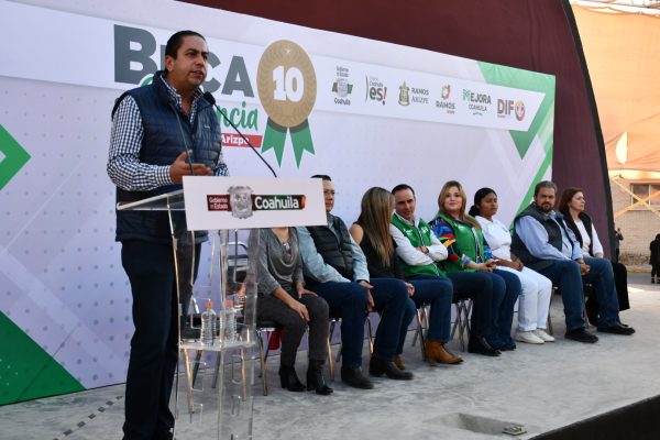 El secretario de Inclusión y Desarrollo Social en Coahuila, Manolo Jiménez Salinas acompañado por el alcalde de Ramos Arizpe, Chema Morales Padilla arrancó en esta ciudad el programa “Becas a la Excelencia” que beneficiará con un estímulo económico a estudiantes de educación básica, media y superior con promedio de 9.5 o mayor.