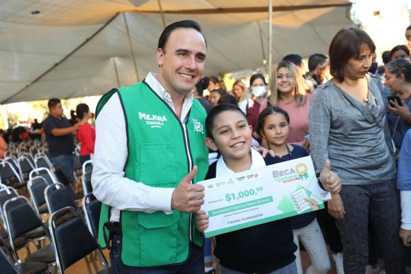 Manolo Jiménez explicó que se realizó la entrega de mil 500 becas al mismo número de estudiantes por un monto de mil pesos por alumno, resultando una inversión de un millón y medio de pesos, mismos que fueron entregados a los padres de familia en distintos módulos instalados por medio de un folio, en la explanada del DIF Municipal.