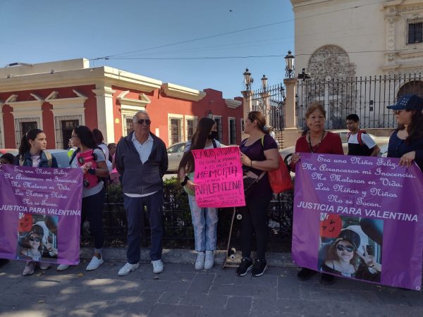 La tarde de este lunes, un grupo de personas, entre amigos y familiares de la menor se manifestaron en la Plaza de Armas para pedir justicia para Valentina «N», de 11 años, quien decidió terminar con su vida el 9 de junio de este 2022 al interior de la casa de sus padres en la colonia Portal del Pedregal, tras presuntamente sufrir abuso sexual por parte de Gerardo «N», docente de la escuela primaria Urbano Flores de Saltillo.