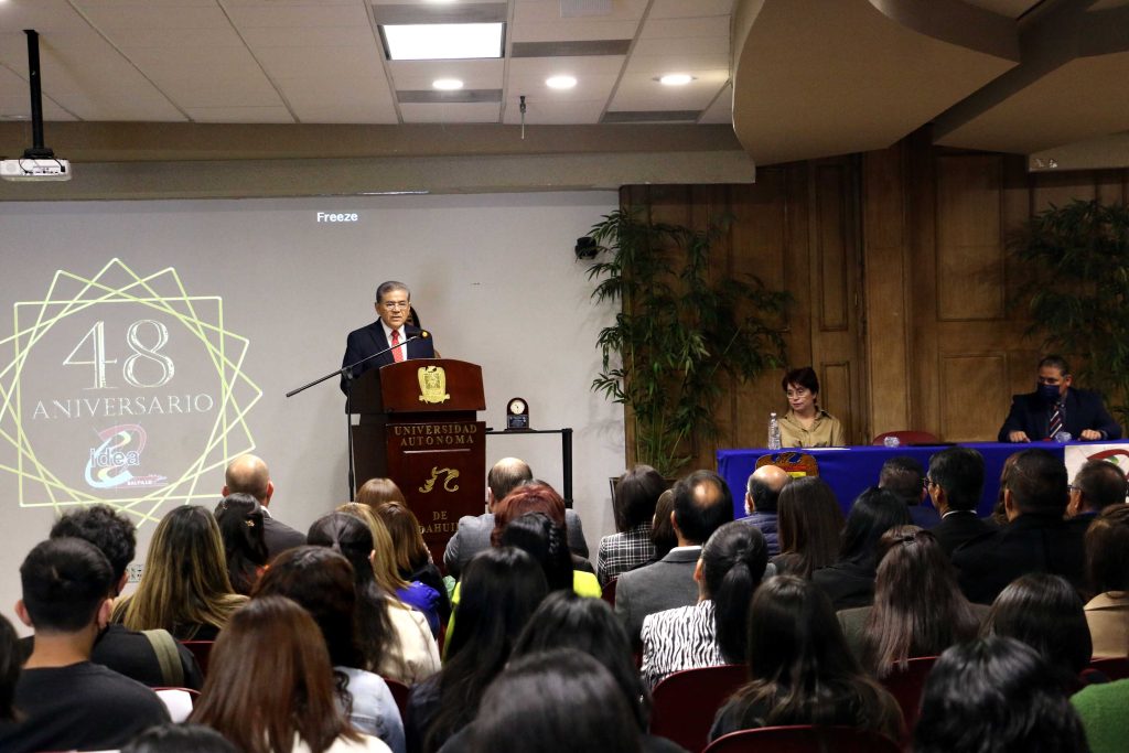 En su intervención, el rector, Salvador Hernández Vélez felicitó a la comunidad del plantel, resaltó la fructífera labor del IDEA al brindar servicios educativos con la flexibilidad que requieren las necesidades formativas de sus estudiantes, quienes por su diversidad de condiciones personales demandan acceso a una modalidad de estudios distinta a la tradicional.