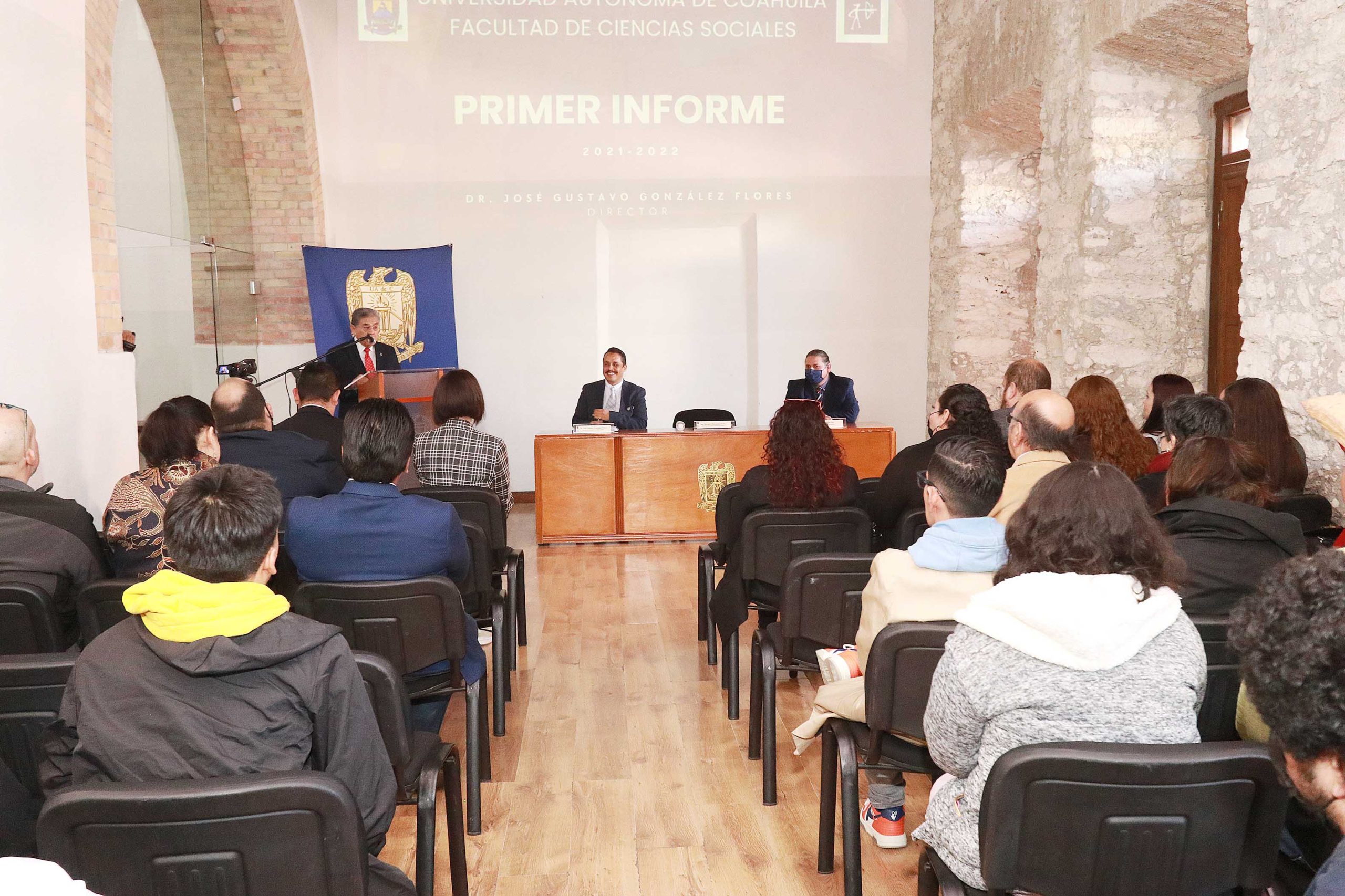 En Sesión Extraordinaria de Consejo Directivo, rindió su primer informe de actividades el director de la Facultad de Ciencias Sociales de la Universidad Autónoma de Coahuila, Dr. José Gustavo González Flores, correspondiente al periodo 2021-2022.