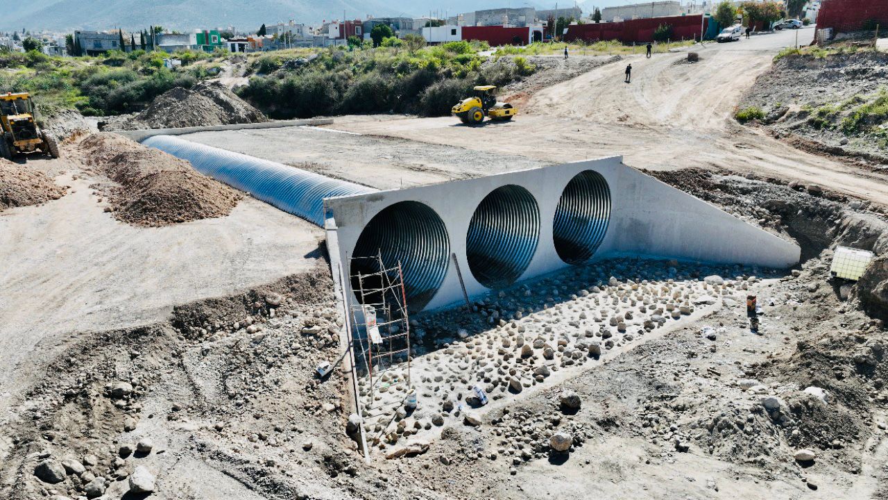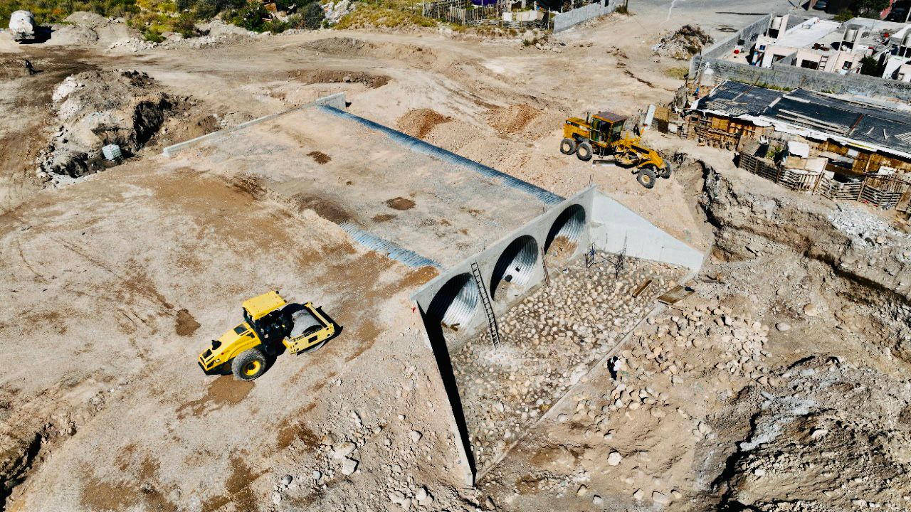 Detalló que actualmente se trabaja en la construcción del terraplén sobre la estructura del desagüe, para posteriormente preparar la base hidráulica, la estructura para las luminarias, banquetas, cordón cuneta y finalmente colocar la carpeta asfáltica.