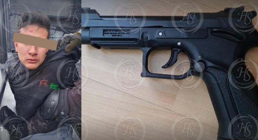 En el lugar se dio a conocer que, el sujeto de 21 años, intentó atracar a un transeúnte al exterior de un negocio, por lo que vecinos dieron aviso a los grupos de seguridad de WhatsApp de la Comisaría de Seguridad y Protección Ciudadana de Saltillo. (EL HERALDO)