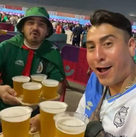 En un video compartido en redes sociales, se puede ver la alegría de dos aficionados mexicanos al tener en sus manos charolas con cervezas y gritando el tradicional «¡Si se pudo!».