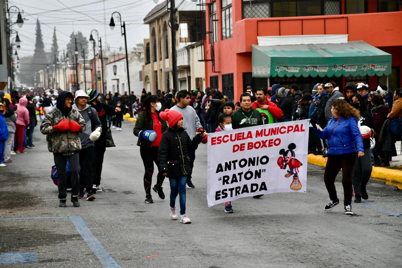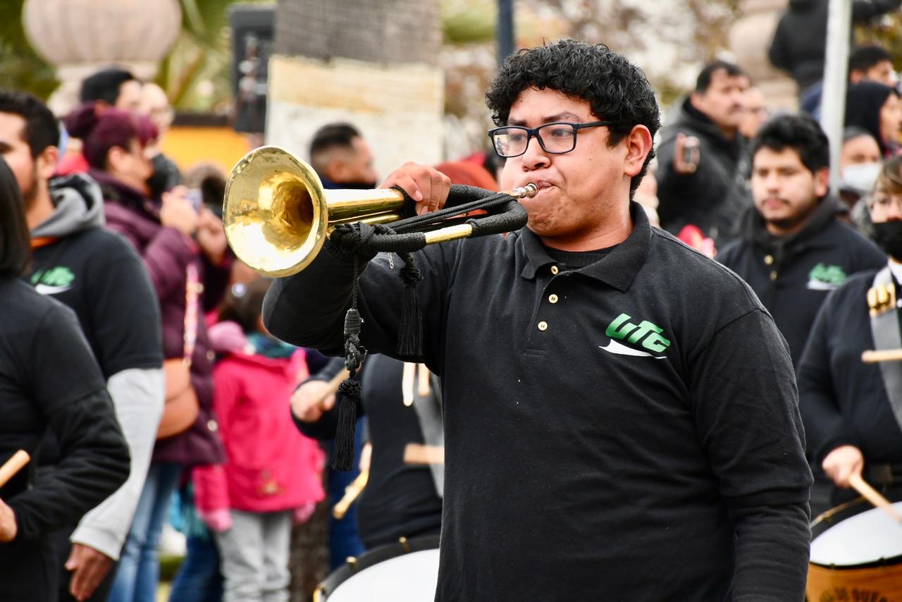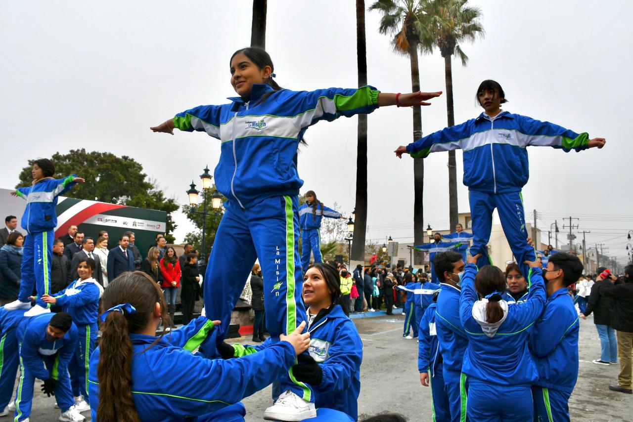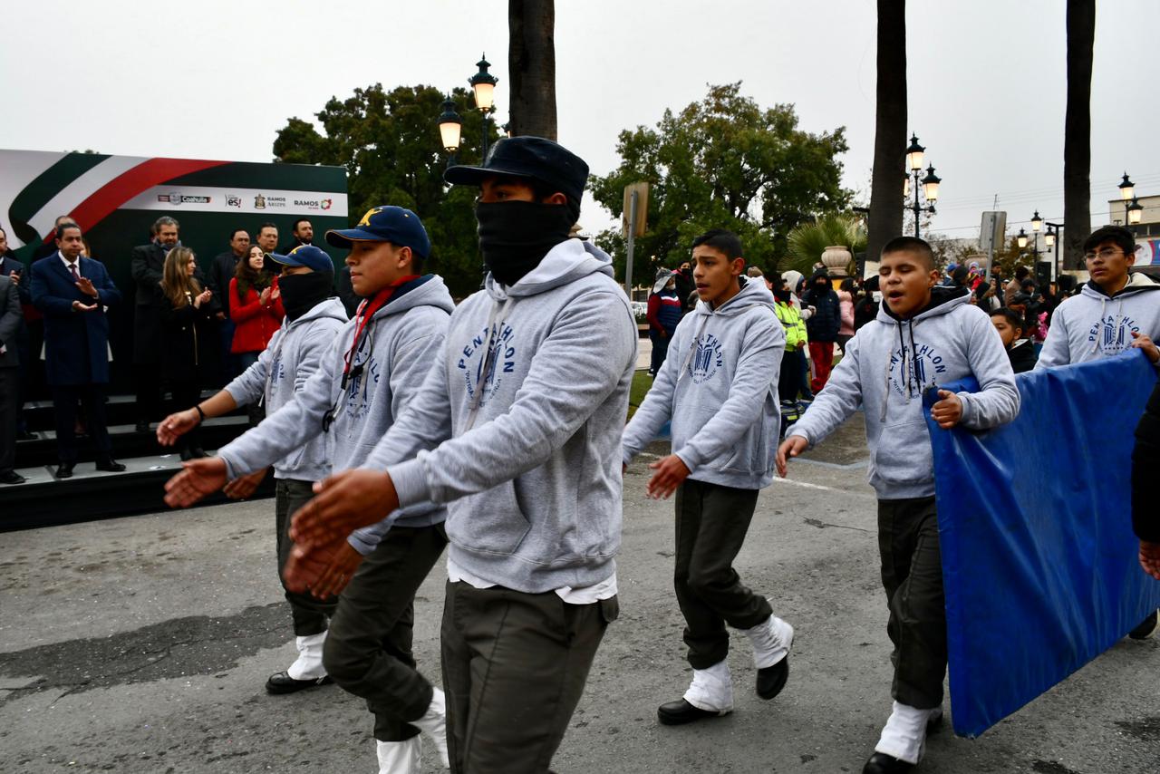 Durante el desfile, las familias de los alumnos presenciaron la actividad a pesar de las bajas temperaturas que se han registrado debido a la llegada del frente frío número 10 en la Región Sureste de Coahuila.