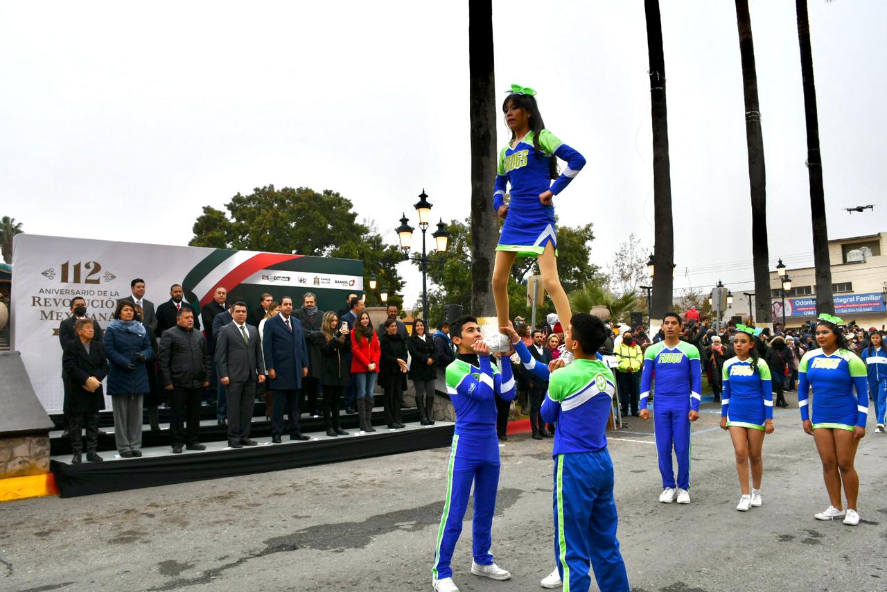 Con motivo del desfile conmemorativo por el aniversario 112 de la Revolución Mexicana este lunes, participaron más de mil 500 alumnos de nivel medio superior y superior pertenecientes a 17 planteles educativos, evento encabezado por el alcalde, Chema Morales Padilla quien fue acompañado por el secretario del ayuntamiento, Alejandro González Farías.