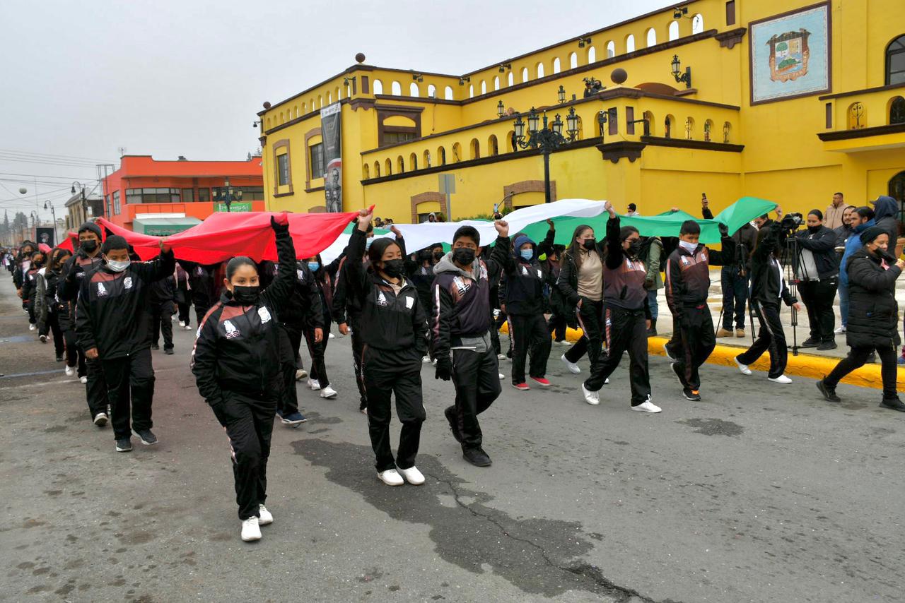 El contingente de escuelas comienzo su recorrido en punto de las 9:00 horas, arrancando desde la calle Ignacio Allende, entre Matamoros y Manuel Acuña a la altura del DIF Municipal con dirección hacia el norte, donde arribaron a la Plaza Principal frente a la Presidencia Municipal donde se realizaba un saludo a las autoridades.