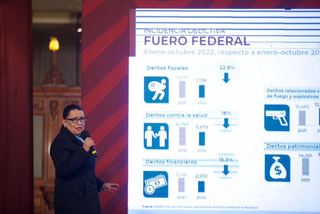 Ciudad de México.- Los datos presentados este martes por la secretaria de Seguridad y Protección Ciudadana (SSPC), Rosa Icela Rodríguez Velázquez, en el informe mensual de incidencia delictiva, confirmaron que octubre fue el mes más violento de 2022, con un total de 2 mil 846 víctimas de homicidio doloso y feminicidio.