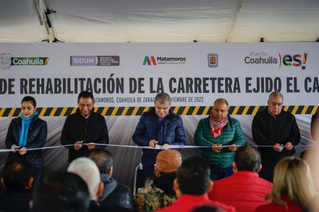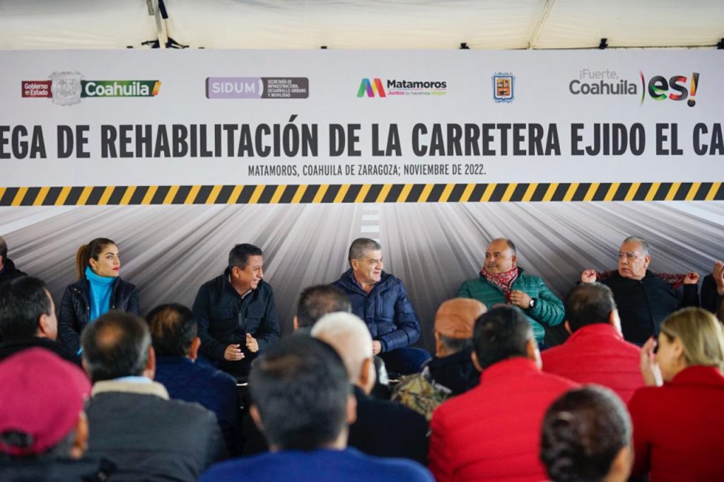 Matamoros, Coahuila.- El gobernador Miguel Ángel Riquelme Solís entregó las obras de rehabilitación de la Carretera al Ejido “El Cambio”, en las que se invirtieron 10.2 millones de pesos.