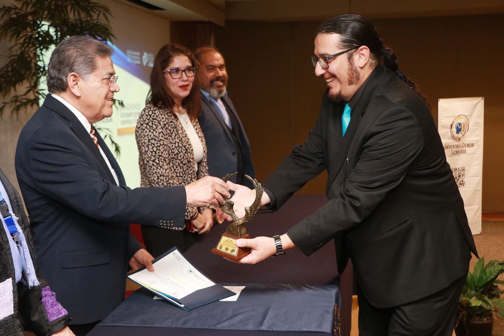 Por otro lado, se hizo entrega de un reconocimiento al Instituto de Ciencias y Humanidades “Lic. Salvador González Lobo” (ICH), por fortalecer la formación de recursos humanos a nivel bachillerato a través de la promoción de las actividades científicas, tecnológicas y de innovación, representando un nuevo modelo institucional exitoso, recibió el director del plantel, Robertony García Perera.