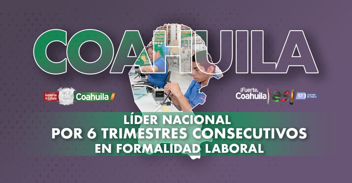 Coahuila continúa como líder nacional en formalidad laboral, con el 65.3 por ciento de los trabajadores coahuilenses trabajando en un empleo formal que le asegura las prestaciones de Ley y seguridad social.