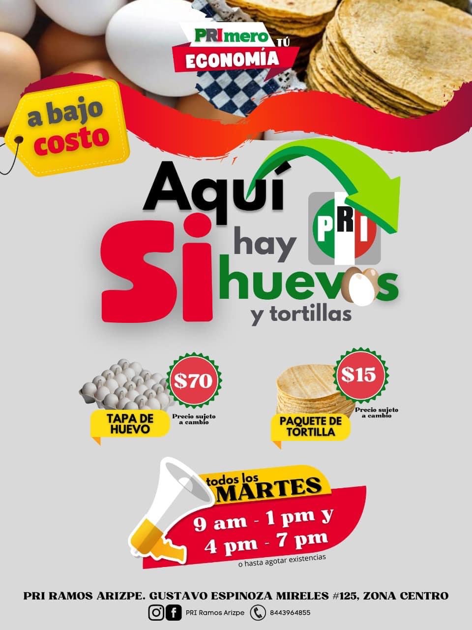 Con la implementación del programa “PRImero tu Economía” que contempla la entrega de huevo y tortilla a bajo costo, que impulsa el Partido Revolucionario Institucional (PRI) en Ramos Arizpe, más de 680 familias del área urbana han sido beneficiadas desde que arrancó esta actividad el pasado 10 de octubre, informó el presidente del partido en el municipio, Carlos Rodríguez Alcantar, quien dijo que las porciones entregadas por beneficiario contienen 30 huevos de la empresa avícola San Juan, los cuales se ofrecen en 70 pesos. Del mismo modo, recalcó que el kilo de tortilla se oferta en 15 pesos.