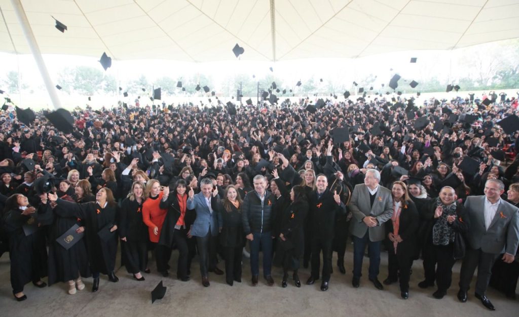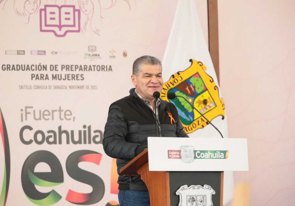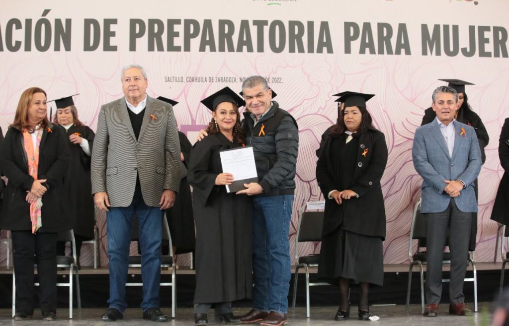 El gobernador Miguel Ángel Riquelme Solís asistió, como Padrino de Generación, a la ceremonia de Graduación de Preparatoria de mil 200 mujeres en Saltillo, quienes alcanzaron este logro académico gracias al programa estatal de Educación para Mujeres.