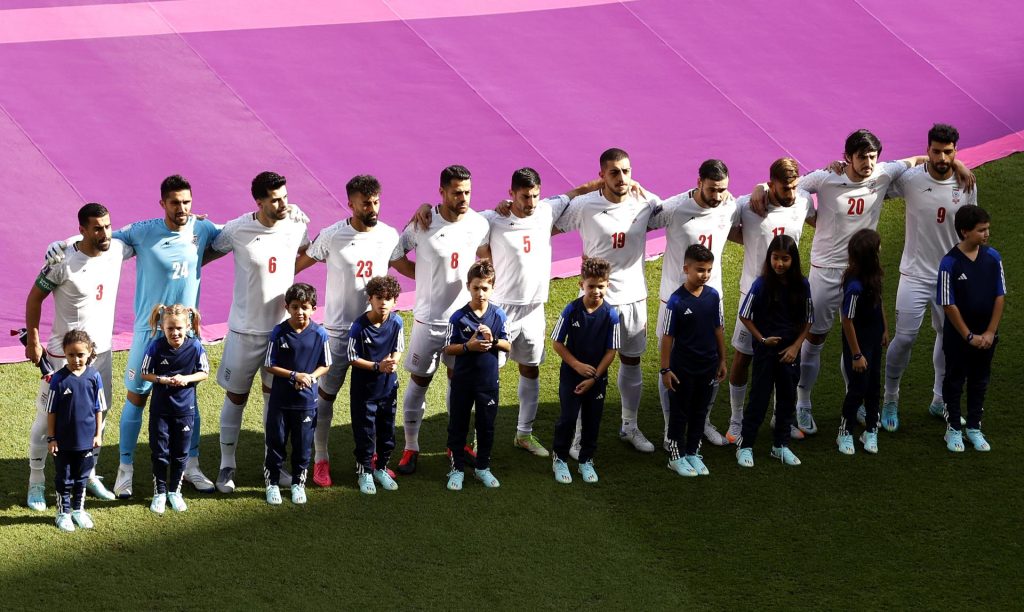 Pese a que las protestas continuaron en la grada, con recuerdos a Mahsa Amini, la mujer asesinada en septiembre por no llevar bien puesto el velo, los jugadores de Irán sí cantaron el himno nacional.