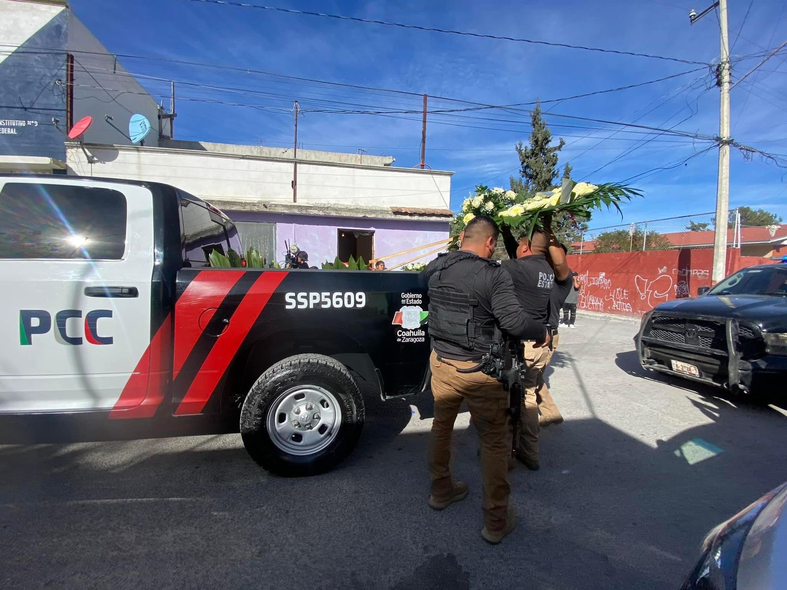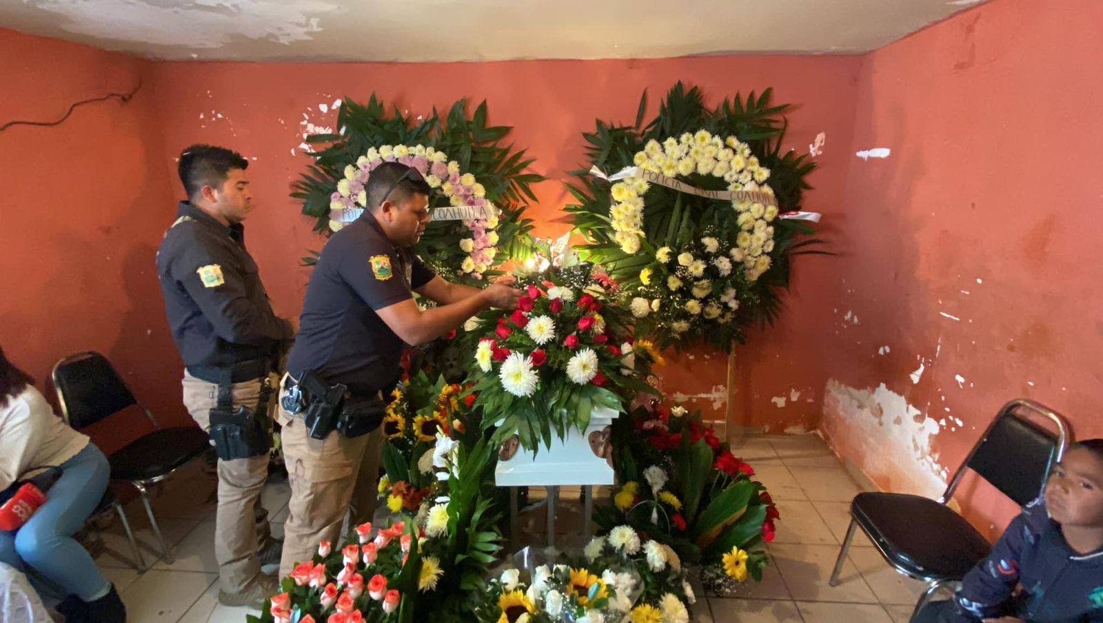 La mañana de este martes, elementos de la Policía de Coahuila llevaron coronas y adornos florales -además de un donativo para gastos funerarios- al inmueble ubicado en el cruce de las calles Genaro Vázquez y Movimiento Campesino, en la colonia Rubén Jaramillo, de Saltillo, donde está siendo velada la pequeña Mayté Rocha, de 5 años de edad, quien falleció en el Hospital Materno Infantil de la capital coahuilense a causa de un paro cardíaco.