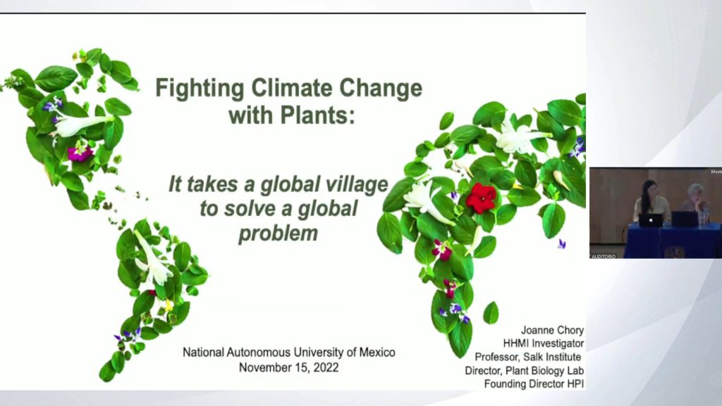 Ciudad de México.- Desde hace más de una década, la doctora honoris causa por la UNAM, Joanne Chory, trabaja en una solución para el secuestro de carbono, basada en la capacidad de las plantas para extraer dióxido de carbono (CO2) de la atmósfera -a través de la fotosíntesis- y convertirlo en biomasa, ya que los suelos de la Tierra contienen una gran cantidad de carbono -estimada en aproximadamente dos mil 300 gigatoneladas (Gt) de carbono a tres metros de profundidad-, lo que constituye aproximadamente tres veces la reserva atmosférica actual de CO2.