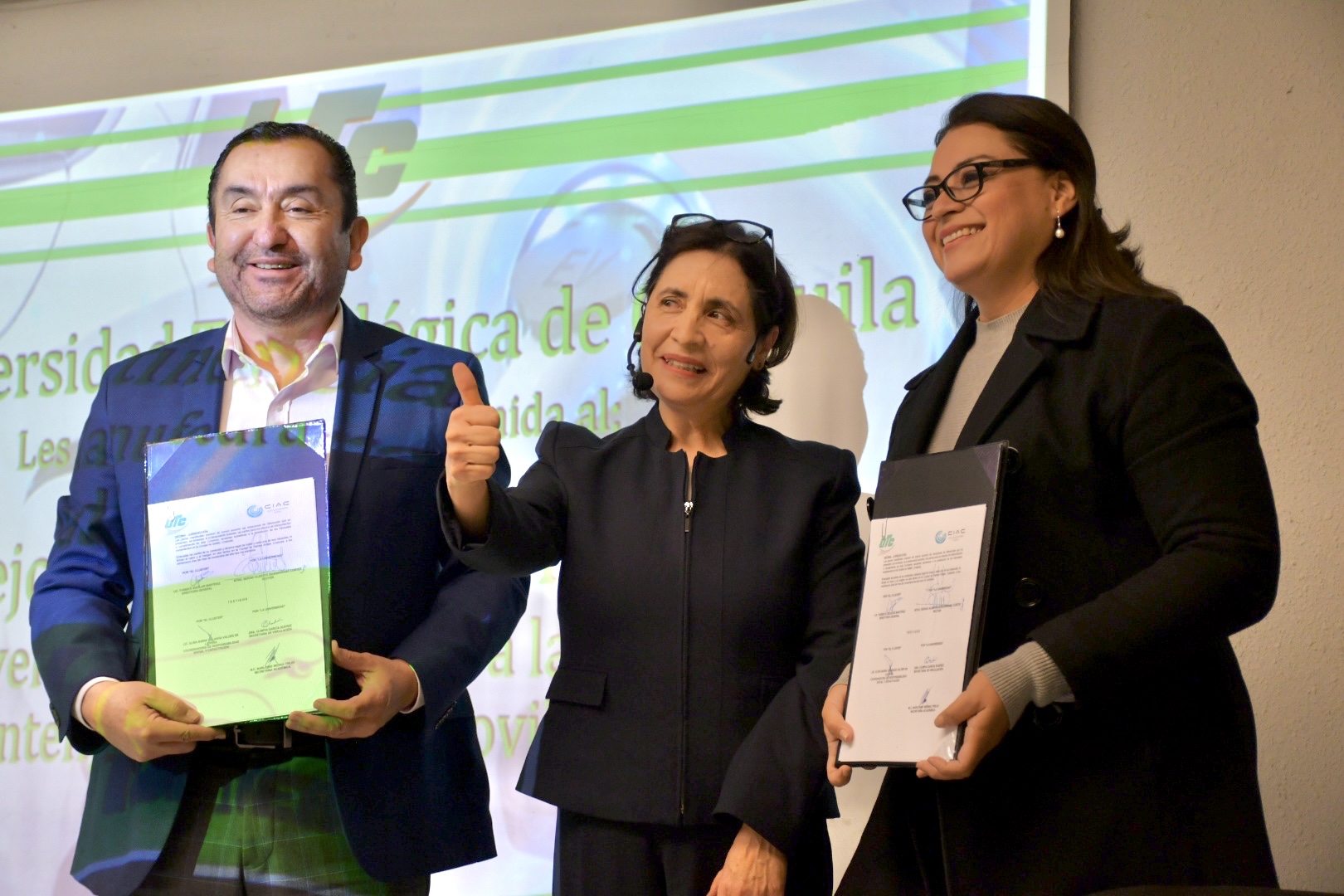 Al término de la ponencia, se dio paso a la firma de un convenio general de colaboración entre la UTC y el clúster de la industria automotriz de Coahuila, el cual refuerza el compromiso entre ambos sectores para generar un mayor conocimiento, soluciones en los procesos productivos y vinculación entre los estudiantes y el sector automotriz.